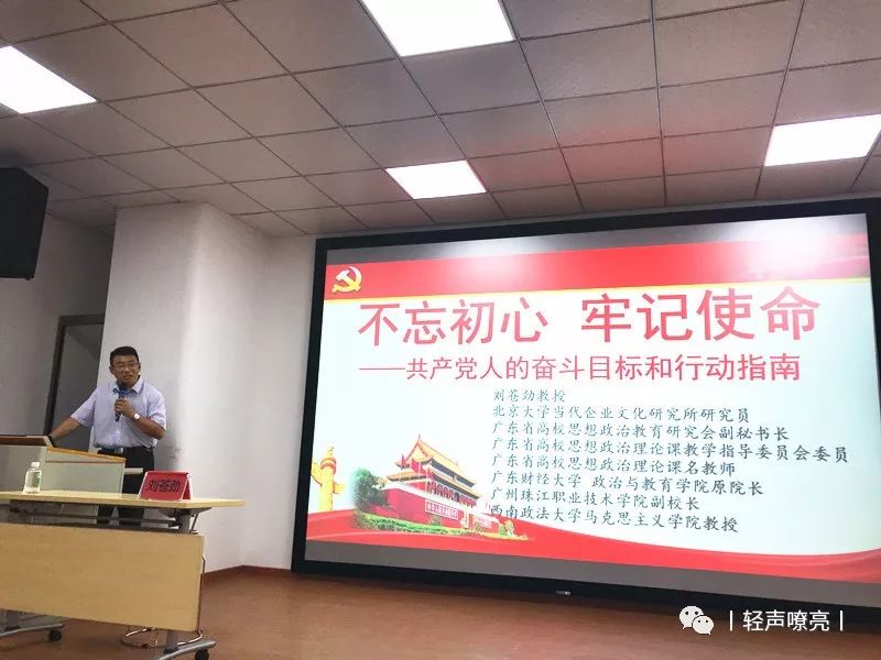 开篇之际,刘苍劲教授=结合国内外的新形势,分析了当前开展“不忘初心、牢记使命”主题教育的重大意义,并从“党的初心哪里找”、“每个发展阶段的重点是什么,又是如何体现不忘初心的”、“立足现实,实现中华民族伟大复兴的中国梦又该明确哪些使命”等三方面重点展开学术报告。刘教授全程脱稿,全情投入娓娓道来,他充分结合我党不同发展阶段的党史文献记载,沿用多个真实历史故事把党的初心使命的深刻意涵为老师们栩栩勾画出来,语言风趣幽默又不乏言辞犀利,有血有肉、绘声绘色,马院全体教师听得津津有味,主题教育报告本身具有深远意义,也是一堂有滋有味的思想政治理论示范课,为全体老师讲出了道理、道出了原理、坚定了真理,体现了刘教授深厚的理论涵养和有效的教学技艺,让老师们深受启发,获益匪浅。